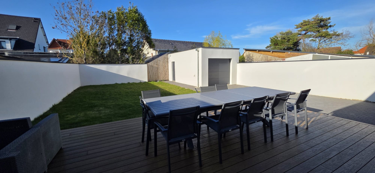 170 m² habitables répartis sur 2 niveaux, une terrasse de 35 m² prolongée par un jardin clos, un garage de 20 m² et une allée permettant de stationner facilement 3 véhicules en toute sécurité (fermée par un portail)
